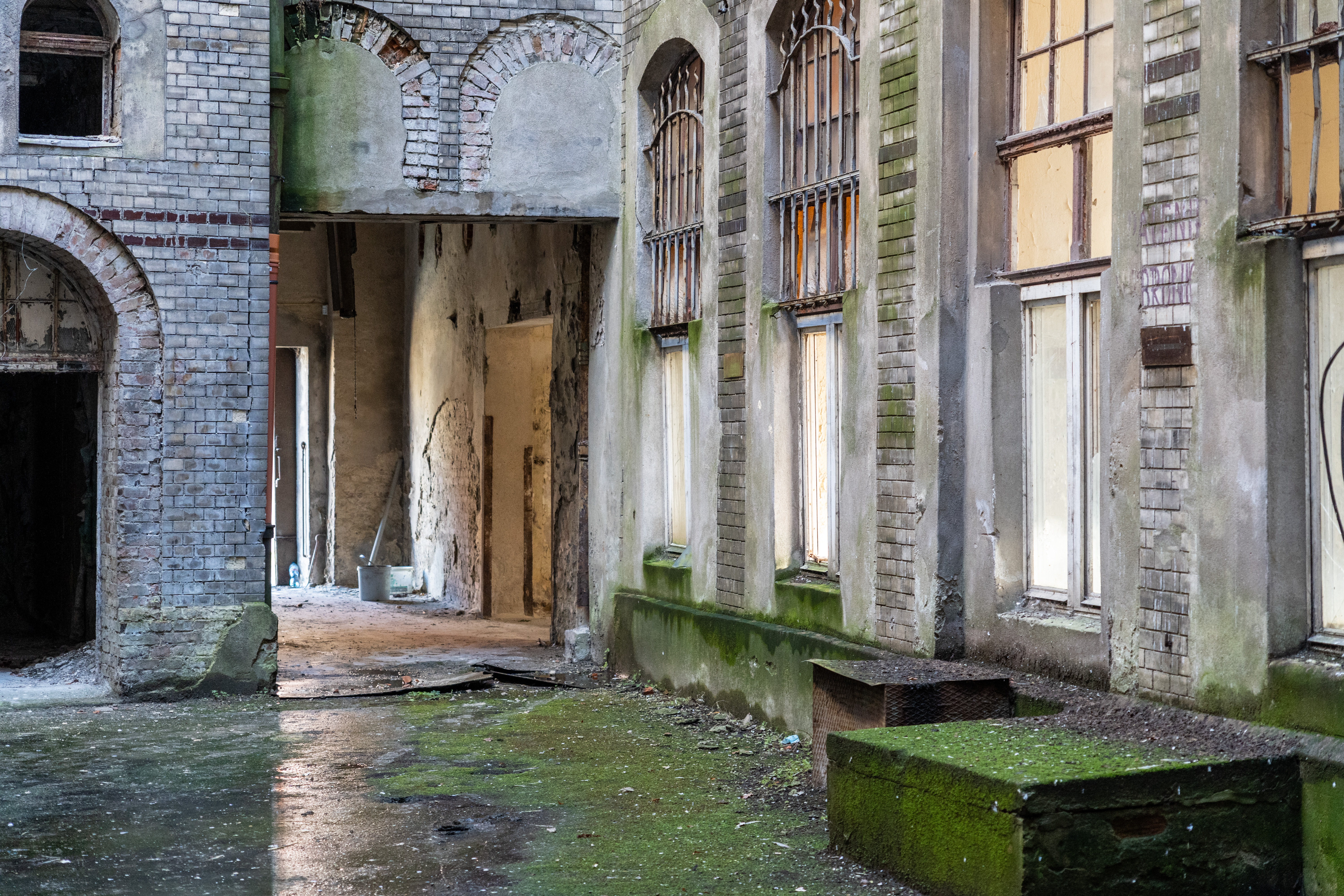 Wychodzimy z poziomu minus jeden i tą samą klatką schodową zmierzamy do opisywanego wcześniej wejścia od ul. Św. Ducha. Stamtąd, udajemy się do patio. Pamiętacie, że będzie ono zadaszone szklanym dachem?