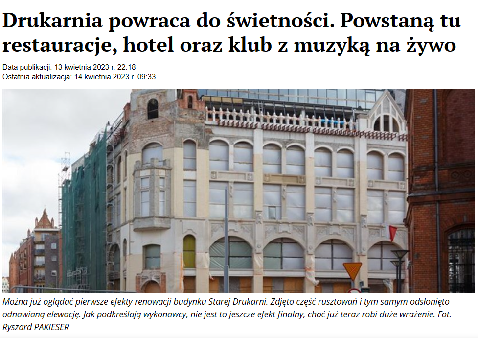 Kurier Szczeciński o Starej Drukarni