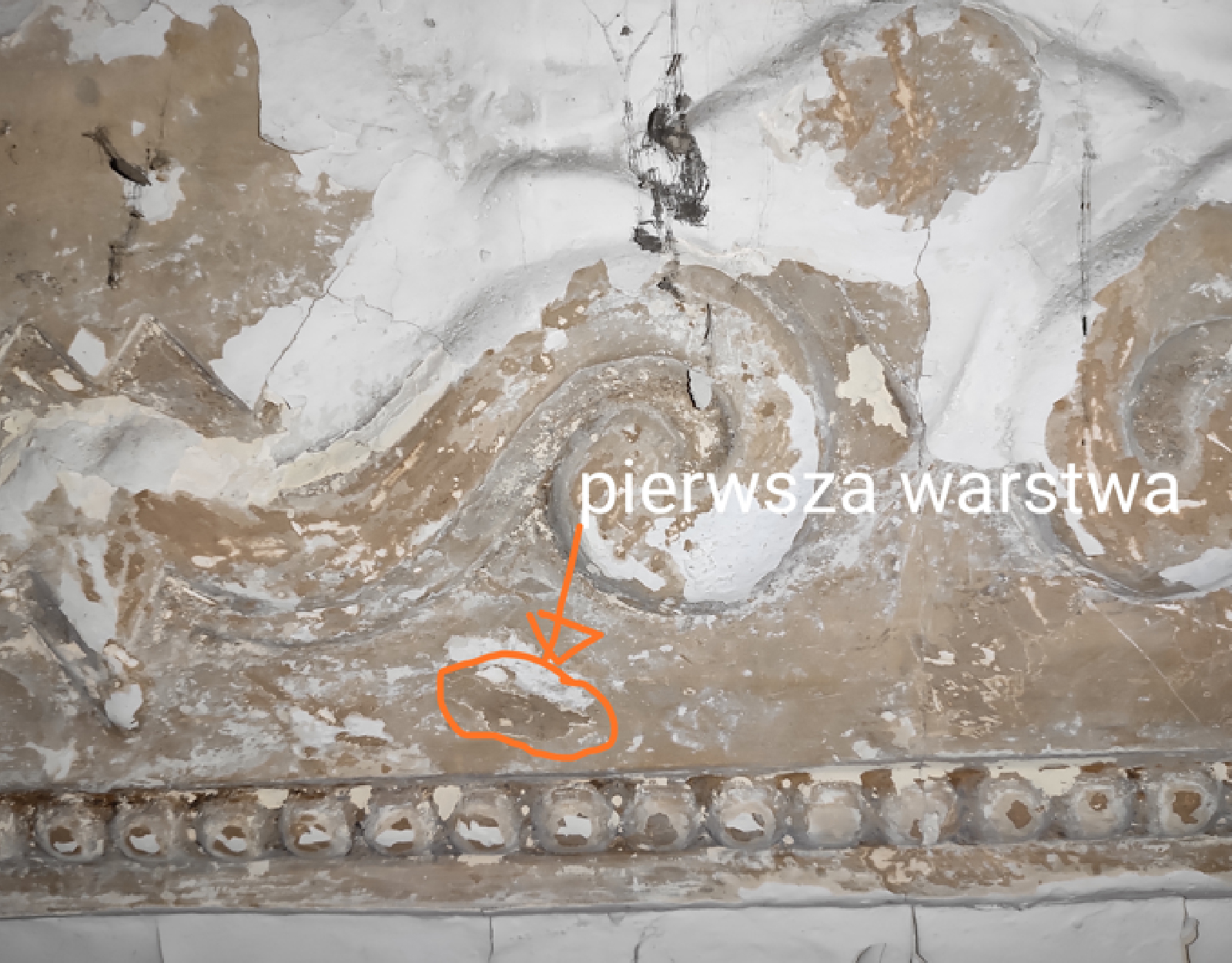 Poniżej znajdą Państwo opis elementów, które zostały zastane w budynku. Odkrywki były wykonywane w ramach prowadzonych prac konserwatorskich.